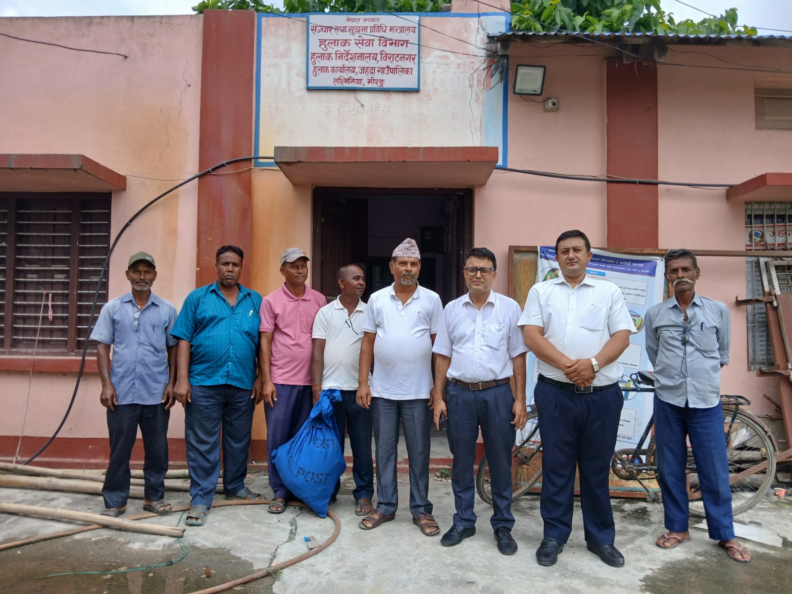 मिति २०८२/०३/१८ गते हुलाक निर्देशक श्री ढाल बहादुर जि.सी.ज्यू र शाखा अधिकृत श्री बिष्णु बहादुर बुढाथोकीज्यू सहितको टोलीद्वारा हुलाक कार्यालय कटहरी गा.पा. र हुलाक कार्यालय जहदा गा.पा. को अनुगमन निरीक्षण गर्नु भयो।